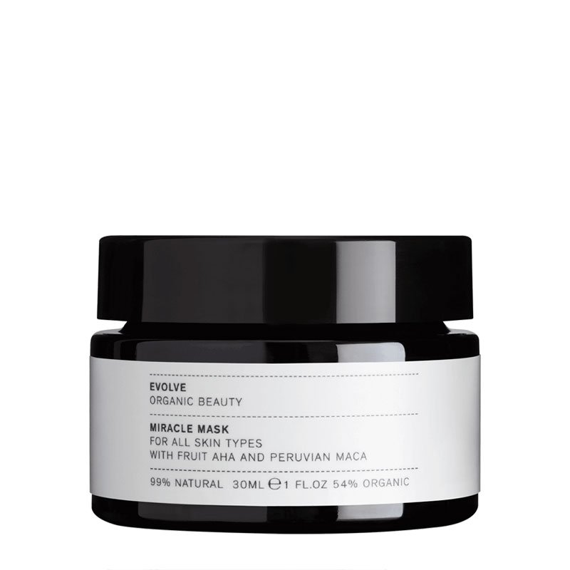 Evolve Beauty 奇跡面膜,含有100%天然果酸,讓肌膚更加光滑。秘魯瑪卡,一種再生能量,有助于刺激細胞更新,提亮肌膚,減少皺紋的出現。木瓜能幫助去除死皮細胞,天然去角質。