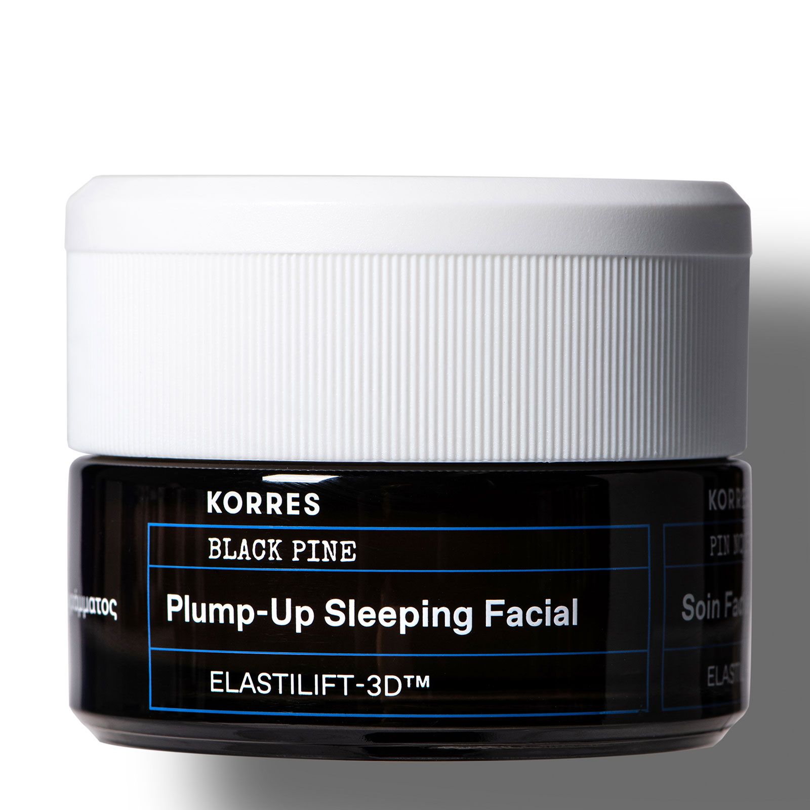 Discover Korres Black Pine Plump-Up Sleeping Facial, a rich overnight facial that helps reduce the appearance of wrinkles, lift the facial contour and visibly plump skin by morning t r n r nFormulated to recharge skin while you sleep and boosted with potent black pine extract
