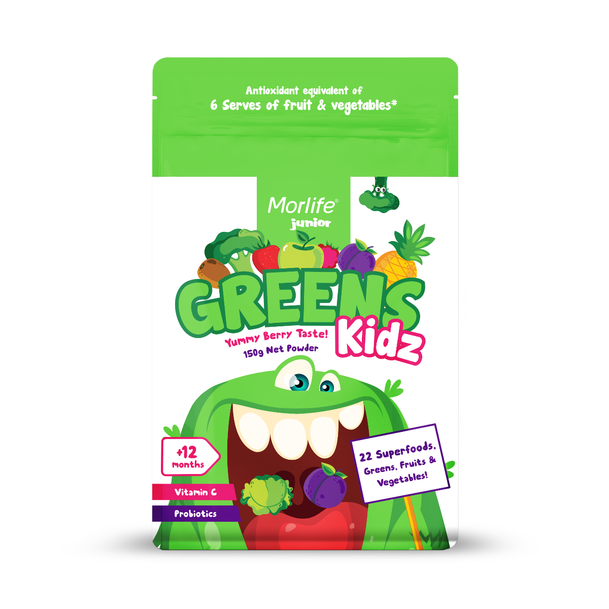 Morlife 兒童綠色營養(yǎng)粉含有22種水果和蔬菜,富含鉀,鎂和鈣,有助于支持生長發(fā)育。這種神奇的粉末還富含抗氧化劑,益生元和益生菌纖維,純天然,不添加任何防腐劑、香料和色素等添加劑,粉質(zhì)細(xì)膩柔滑,口感清爽,營養(yǎng)價(jià)值特別高。具有美味的漿果味道,可以融入冰沙,松餅,蛋糕甚至撒在麥片上。