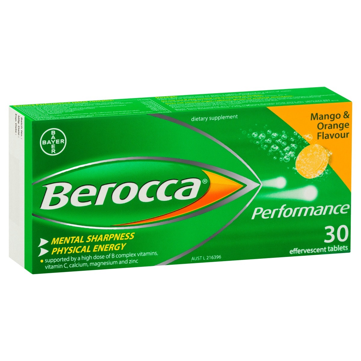 Berocca 拜維佳 Performance維生素B+C+鈣鎂鋅水溶泡騰片(芒果和香橙味)(增強免疫力、防流感)采用科學組合配方,融合了維生素B族、維生素C、鈣、鎂和鋅等天然活性營養成分,非常利于人體組織的吸收,能補充人體各部細胞所需的養份,能快速消除疲勞恢復精力,并能增強體質,又能增強記憶力。