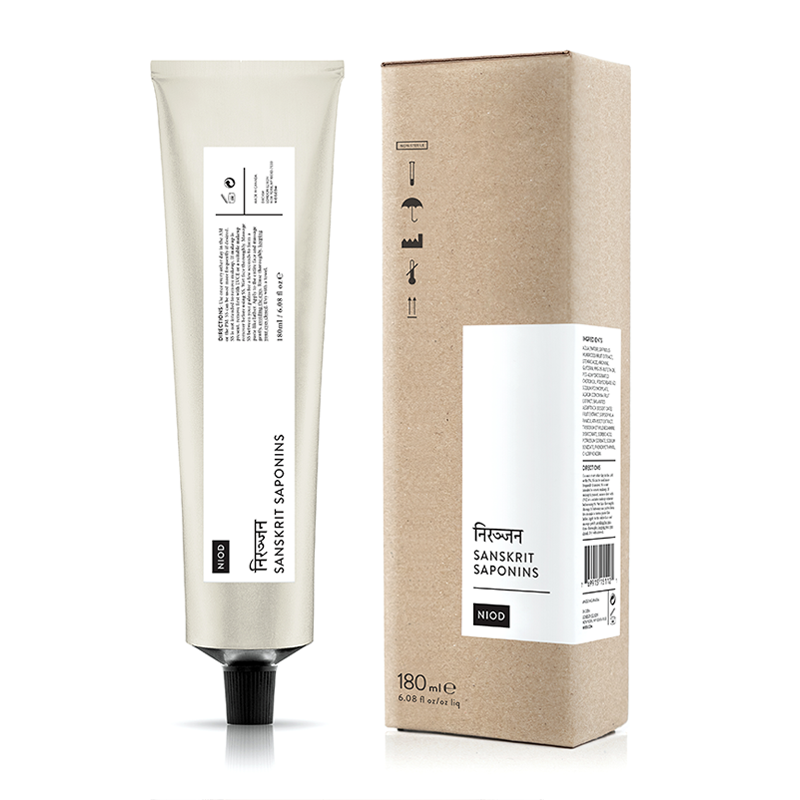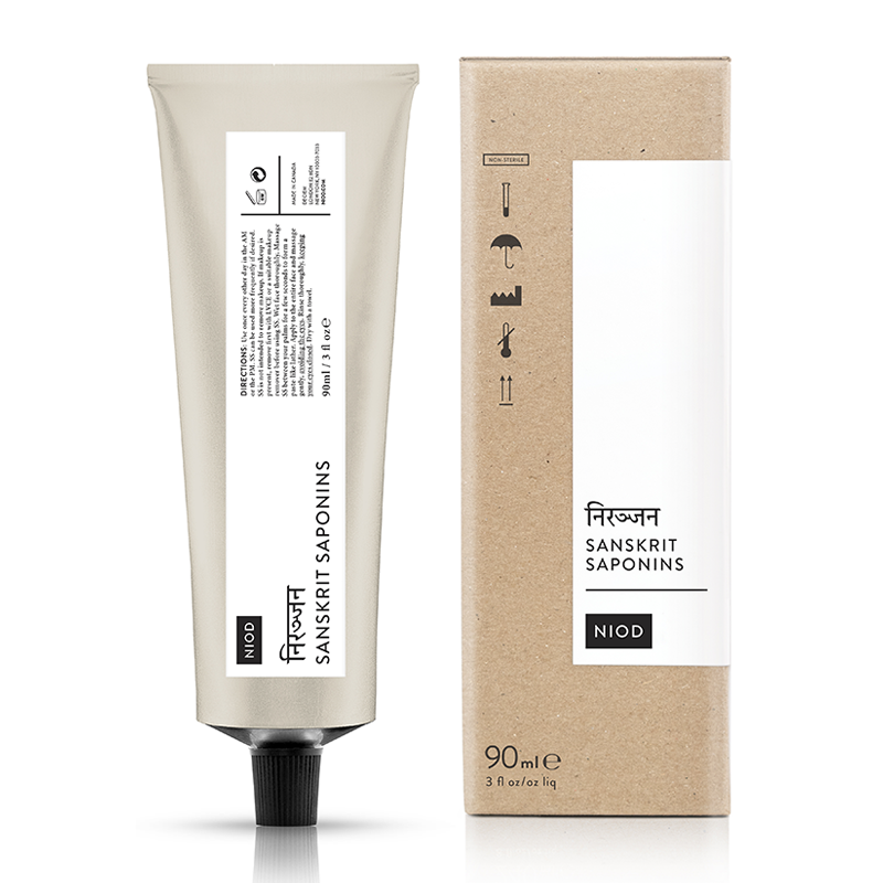NIOD Sanskrit Saponins is a viscous and intense cleaning balm for the face SS is a pH-balanced suspension of the amino acid, Lysine, found in saponins from the Ayurvedic plants shikakai and sapindus mukorossi Plant saponins have traditionally been used to clean the skin well and also clean the surface of dead cells without peeling the skin and removing dirt