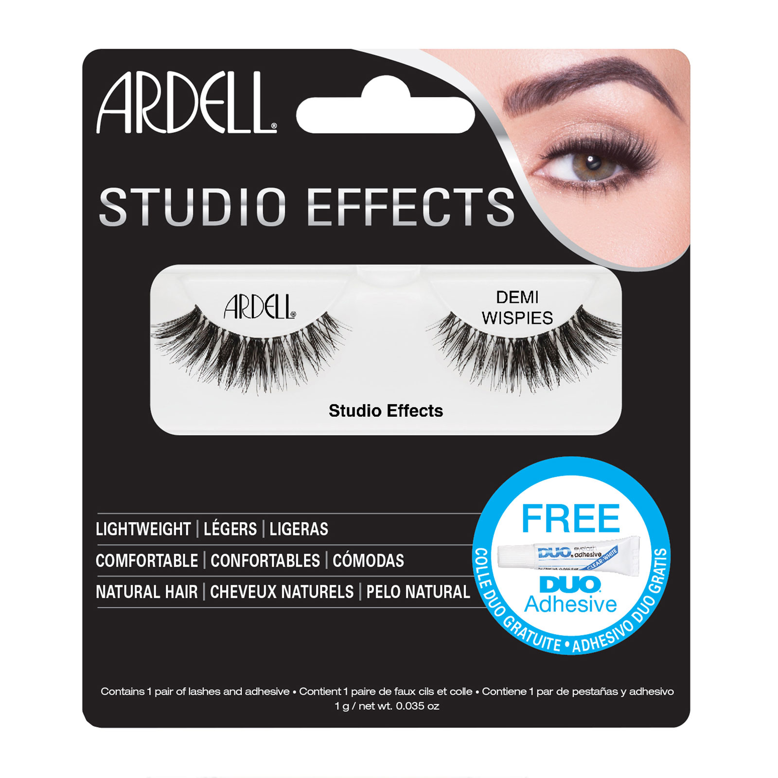 Ardell Studio Effects Demi Wispies are even more dramatic than standard Ardell Demi Wispies! These fab lashes have four flared individual lashes placed towards the outer corner of the band, for an even more intense and dramatic appearance