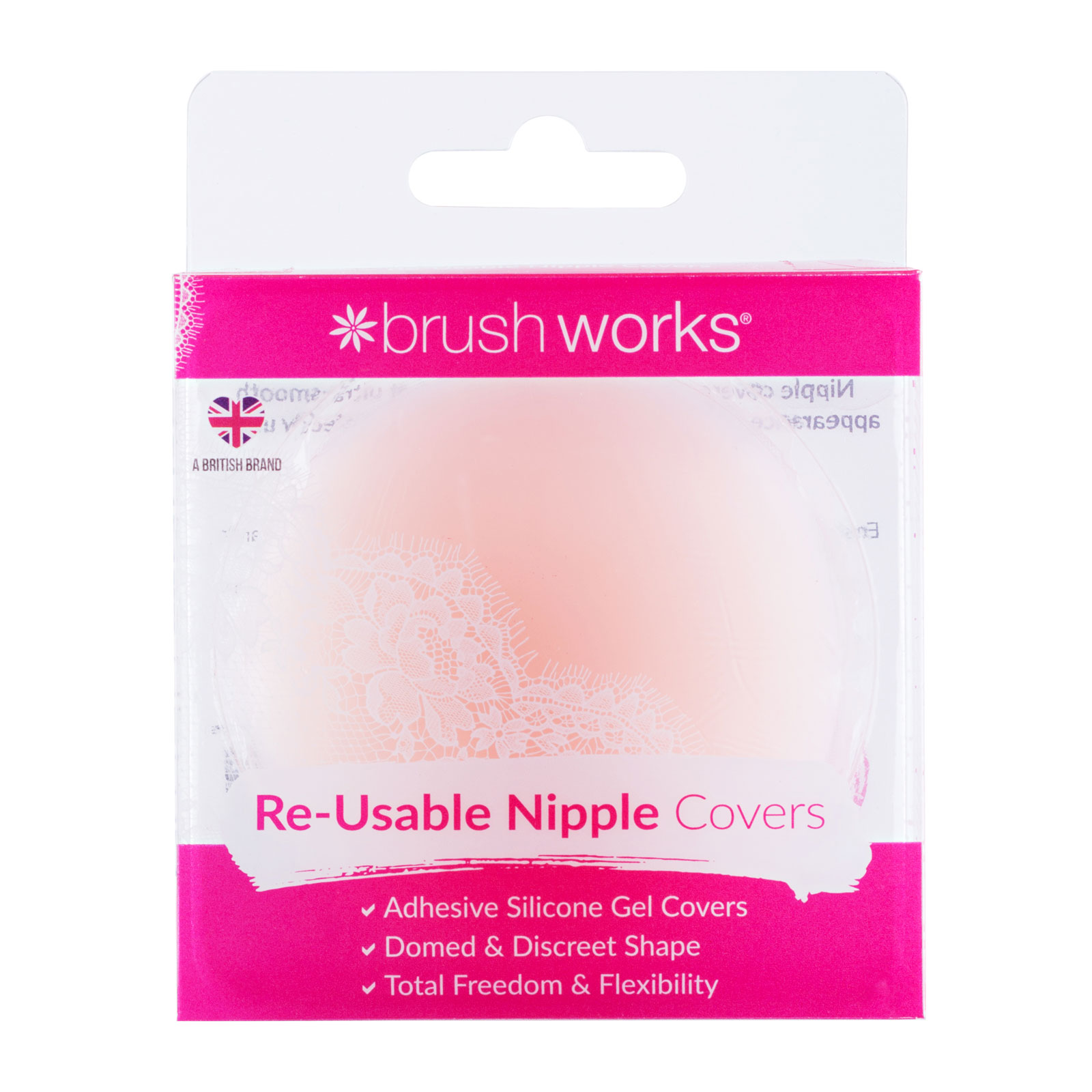 Brushworks Re-Usable Silicone Nipple Covers are perfect for a discreet look under tight fitted clothing These covers are reusable, with a clear film over the sticky back which increases hygiene and ensures they can be used multiple times They are easy to apply, waterproof and smooth under clothing for a bra-free look