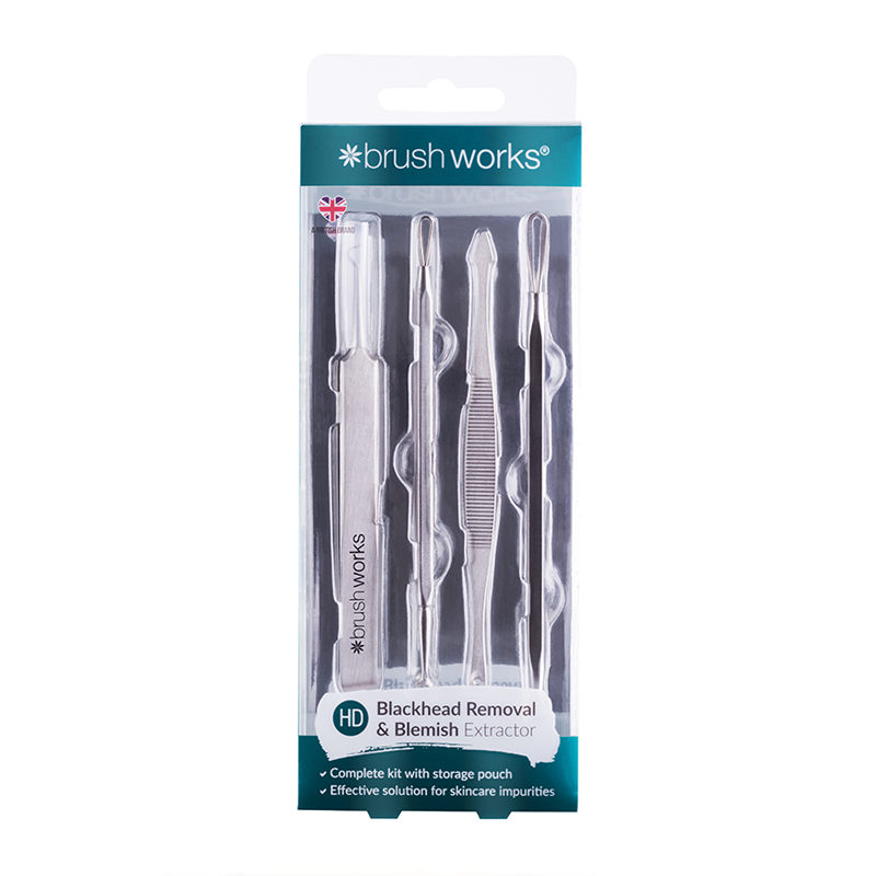 The Brushworks Blackhead & Blemish Remover Set is a complete set of 4 unique tools with 7 different heads The high quality hand-crafted stainless-steel implements are perfectly designed for performance and precision These tools are durable, hygienic & easy to clean