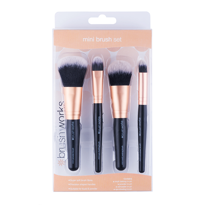 The Brushworks Mini Brush Set contains 4 mini brushes that are suitable for use with both liquids and powders