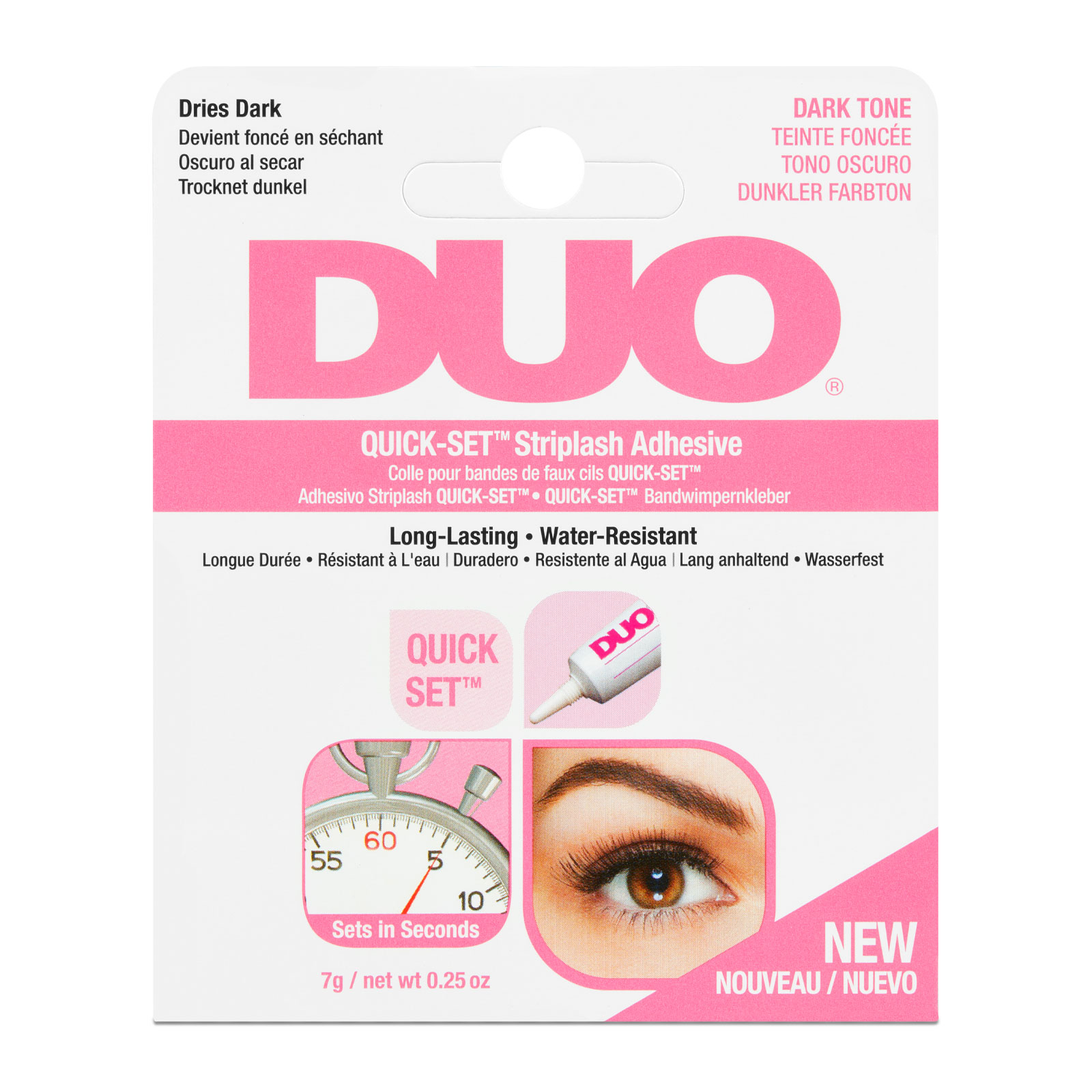 Discover the Duo Quick Set Dark, this water resistant formula dries quickly The dark tone makes it perfect for blending into eyeliner and providing long lasting wear for strip lashes
