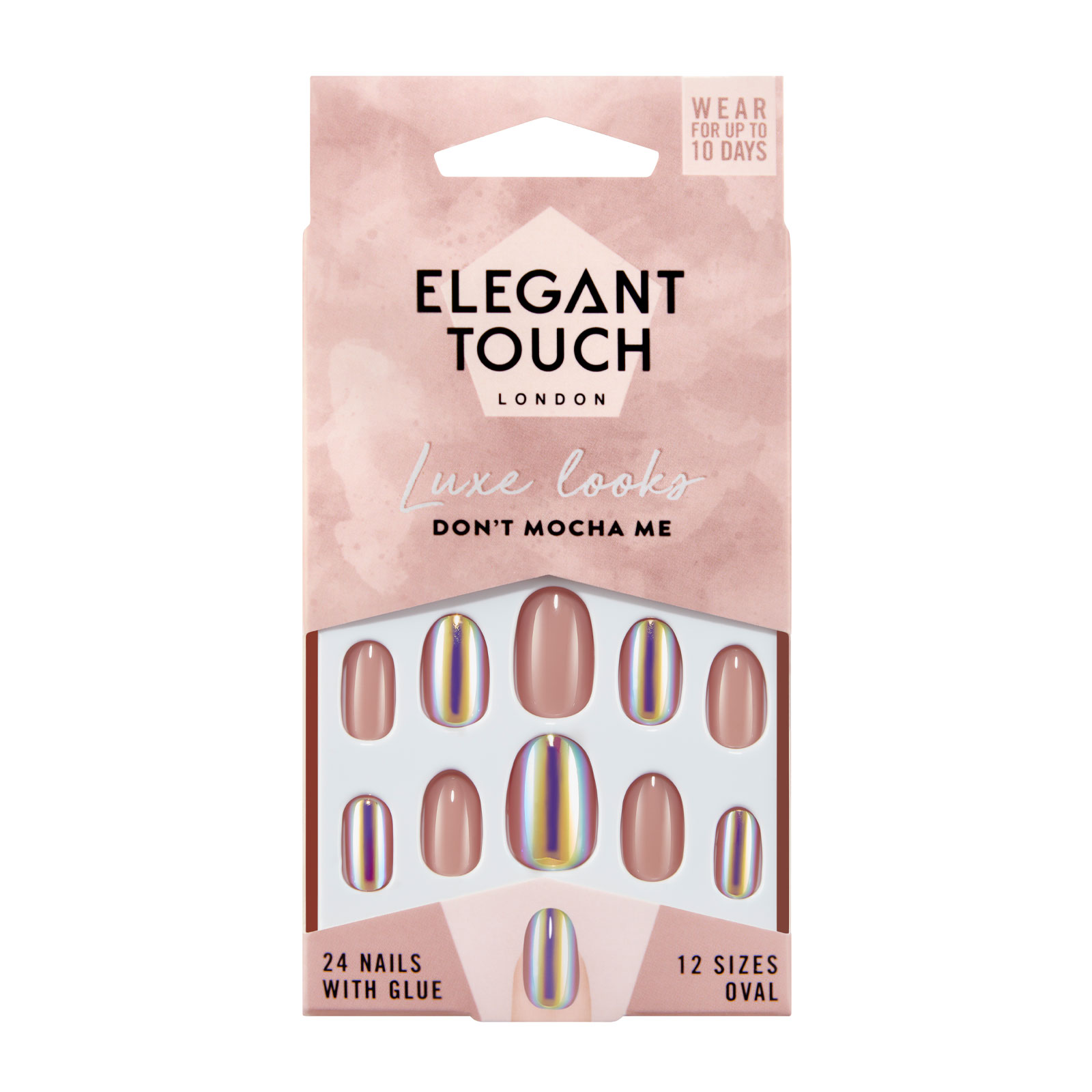 Reflect your inner sass queen with these gorgeous oval nails Elegant Touch Luxe Looks Nails Don t Mocha Me The luxe metallic accents perfectly complements the classic nude style so you no longer have to decide between sassy or chic!