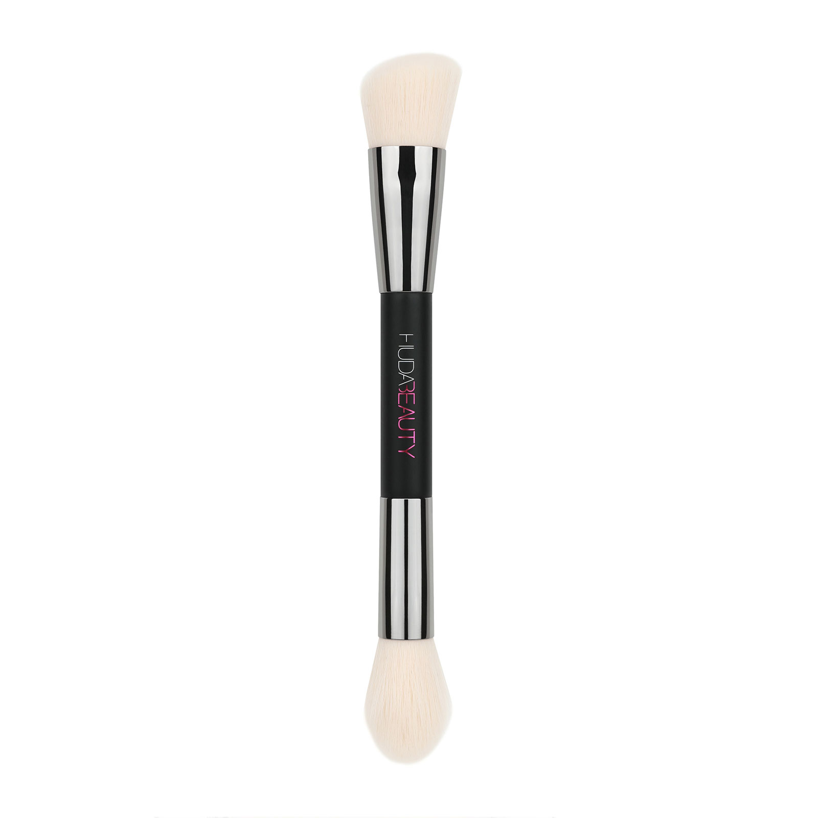 The dual-ended Huda Beauty Bake & Blend Complexion Brush is ideal for baking, applying blush, bronzer, and powder foundations