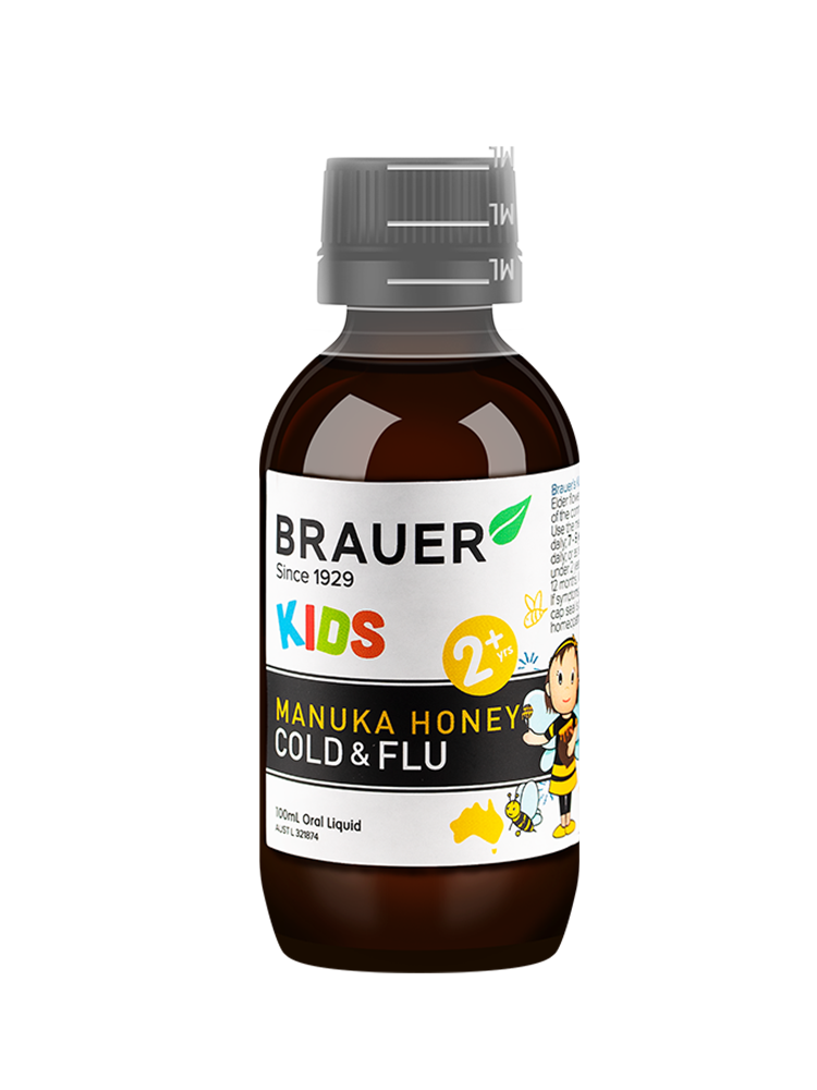 Brauer 麥盧卡蜂蜜兒童感冒流感糖漿 蘊含純天然麥盧卡蜂蜜精華,成分溫和無刺激,易吸收,專為兒童預防感冒流感而設計,其天然活性成分能夠有效快速緩解寶寶及兒童因普通感冒或流感病毒引起的輕微咳嗽、咽喉腫痛、支氣管炎和鼻塞等不適癥狀。