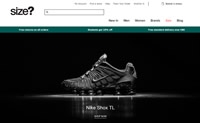 size?是英國倫敦的球鞋精品店,銷售的產品主要是各大品牌的知名系列,包括耐克的AJ系列、阿迪、亞瑟士等鞋款,是引流球鞋界潮流的先行者。近年來上升非常迅速有很多的線下實體店,經常還有限量款的發售,也經常會有一些聯名款式出現,很受街頭潮流愛好者的喜愛。