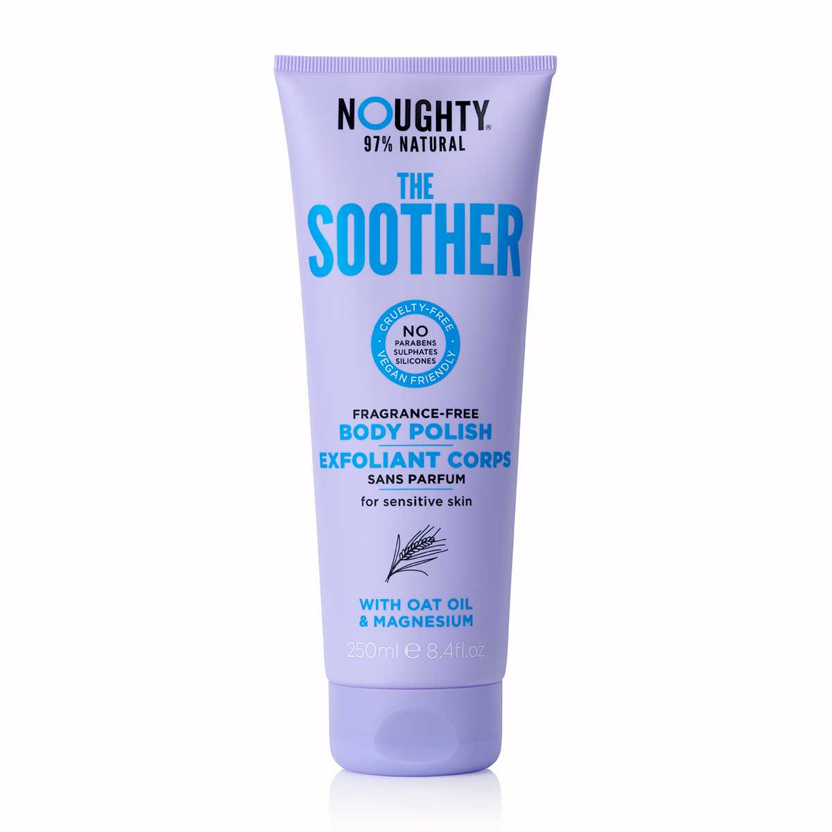 This Noughty The Soother Body Polish delicately exfoliates, without irritating the skin Dermatalogically tested for sensitive skin Fragrance free Calling all sensitive souls Enriched with oat oil and magnesium, this fragrance-free body polish helps to delicately exfoliate the skin