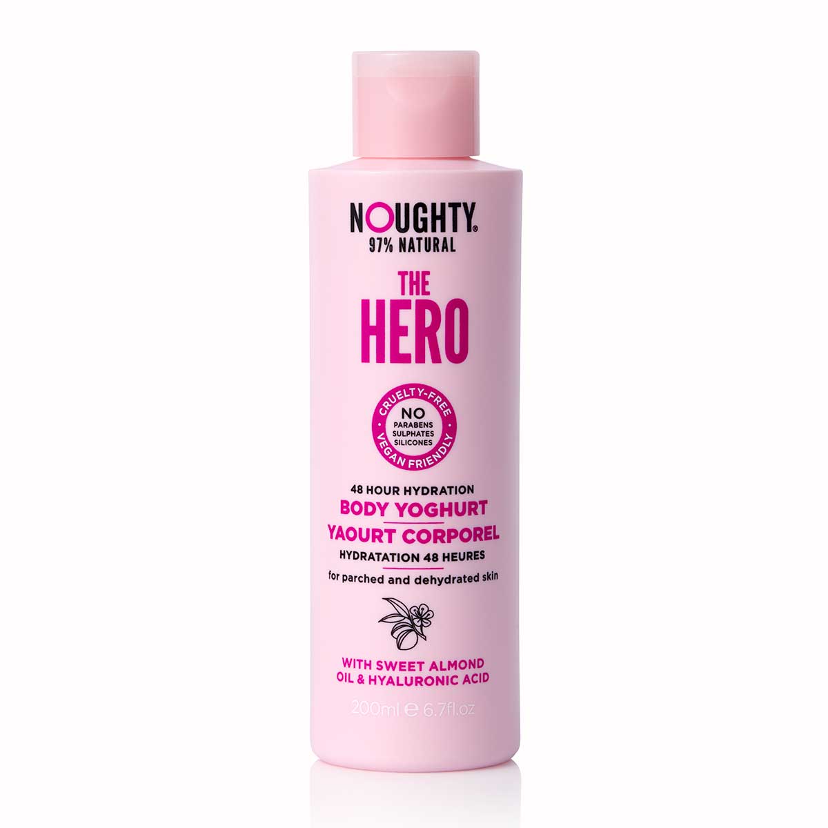 Discover Noughty The Hero Body Yoghurt, a 48-hour hydration body yoghurt for parched and dehydrated skin Moisture to the rescue Enriched with sweet almond oil, hyaluronic acid and sea buckthorn, this creamy body moisturiser provides 48 hour hydration Helps to rejuvenate, comfort and condition the skin, while leaving it soft and smooth