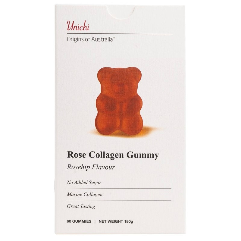 unichi 膠原美白小熊玫瑰膠原軟糖 ,是一種方便攜帶的膠原蛋白補充劑,含有天然玫瑰花瓣和海洋膠原蛋白,玫瑰果味,不添加糖,口感Q彈,可口美味。小熊造型,十分可愛。