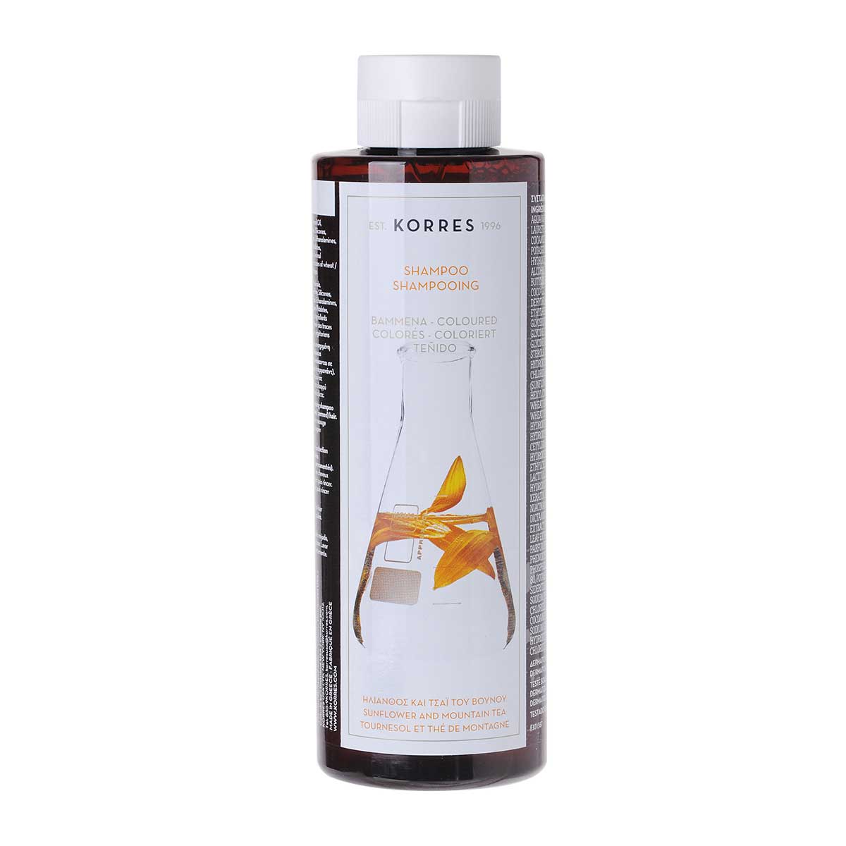 KORRES Shampoo Sunflower and Mountain Tea is specially formulated shampoo for coloured hair, designed to protect and deeply moisturise chemically treated hair Sunflower and mountain tea, natural sources of polyphenols, help protect hair colour and sheen from the rigours of frequent shampooing, styling and sun exposure