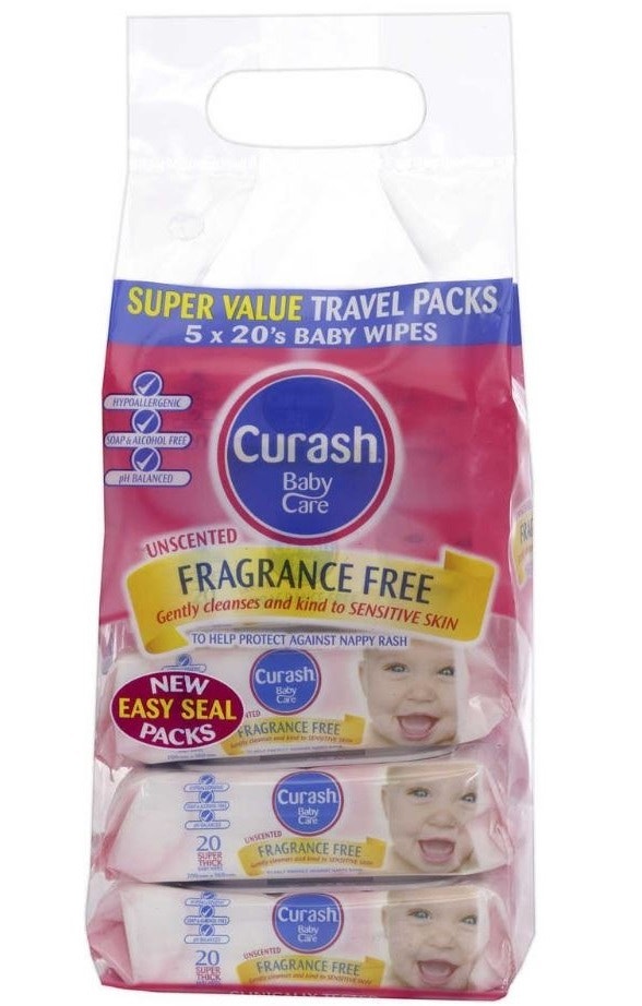 Curash 嬰兒濕紙巾 無香型 旅行裝20片*5袋