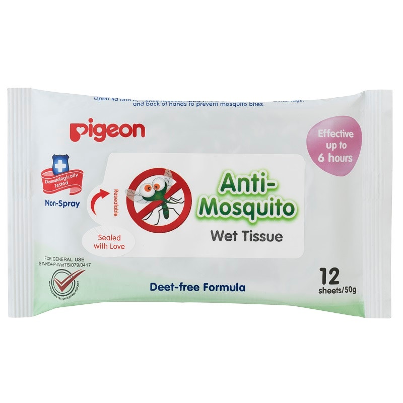 Baby Mosquito Wipes 12 s Pigeon Baby Mosquito Wipes contain a DEET free insect repellent to protect the skin against mosquitoes