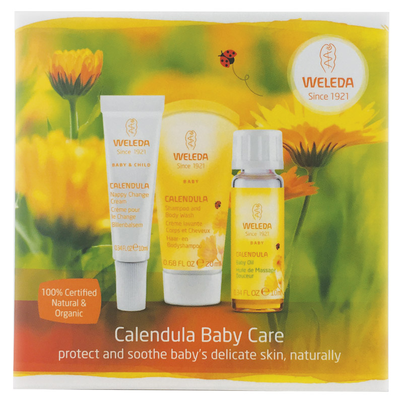 Weleda 維蕾德 金盞花 嬰兒洗護理套裝禮盒(沐浴洗發潤膚護臀護手)包含:Weleda 維蕾德 有機金盞花嬰兒二合一洗發水沐浴露 20ml、Weleda 維蕾德 有機植物金盞花嬰兒潤膚油 10ml、Weleda 維蕾德 有機金盞花嬰兒護臀膏 10ml。