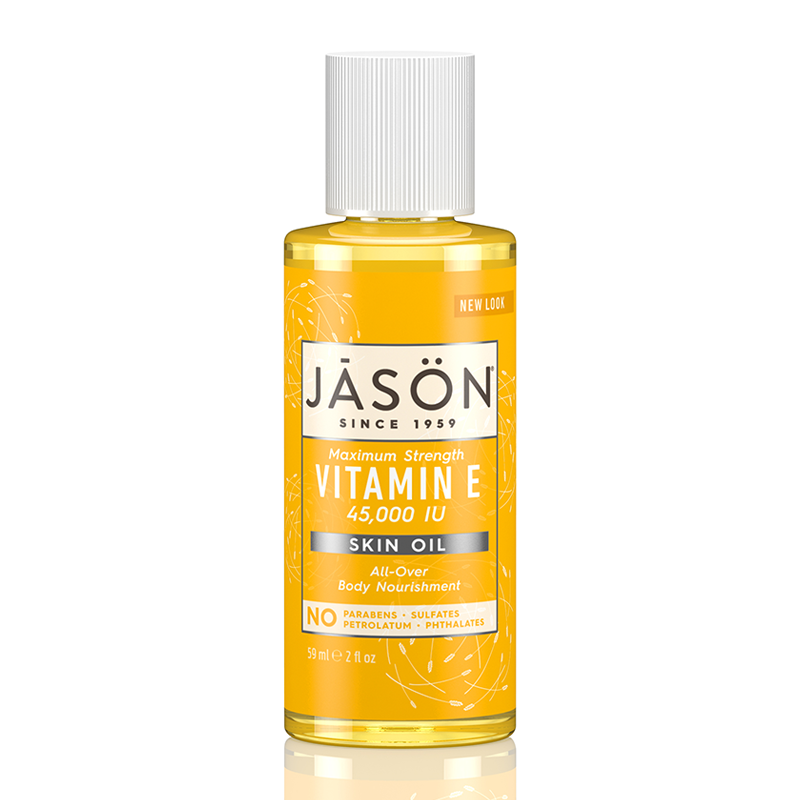 JASON Maximum Strength Vitamin E 45,000 I U Pure Natural Skin Oil combines Vitamin E Oil with an exclusive blend of 7 essential natural oils, including Blackcurrant, Evening Primrose, Macadamia Nut and Borage Use at night to help reduce the appearance of fine line and wrinkle