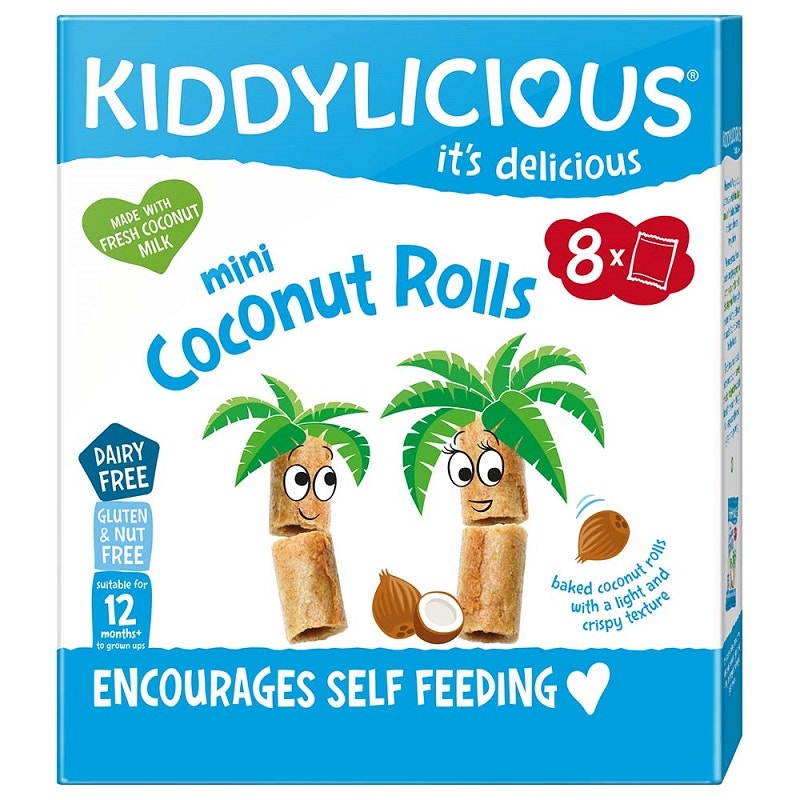 Kiddylicious 童之味 寶寶零食 嬰兒磨牙棒 迷你椰子卷 由泰國天然椰汁、椰肉研磨壓榨制成的椰漿,香氣濃郁,口感松脆。非油炸,非膨化,天然食材烘焙而成,小巧萌萌的脆卷,口味清新,酥脆濃香。每一大包里有8個獨立小包裝,一次一包,隨時隨地享受美味。
