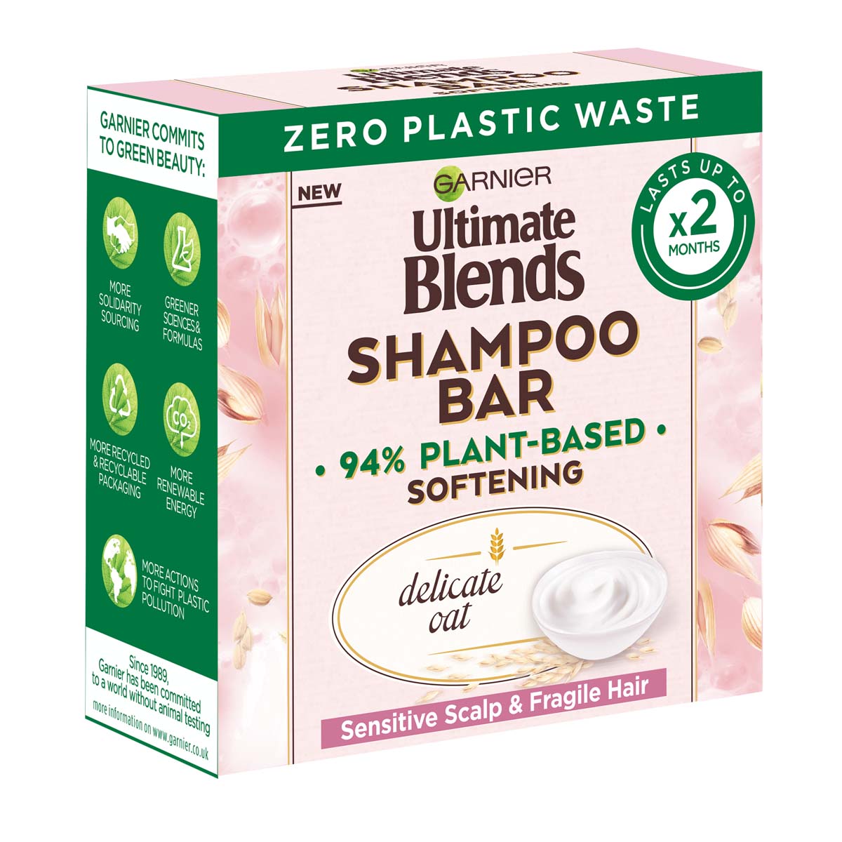 Join the shampoo revolution and try Garnier Ultimate Blends Delicate Oat Softening Shampoo Bar suitable for a Sensitive Scalp & Fragile Hair Our Delicate Oat Solid Shampoo Bar is blended in a gentle recipe, with sustainably sourced ingredients, including Oat Milk & Rice Cream to nourish & soften hair