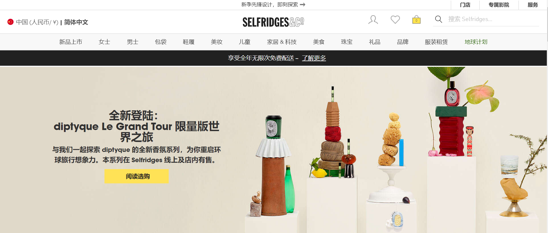 Selfridges塞爾福里奇百貨公司,位于英國牛津街,是倫敦最著名的百貨公司之一,聚了數量眾多的大眾流行品牌及設計師專柜,類別非常齊全。Selfridges英國商城針對中國用戶上線Selfridges中文官網,網站支持支付寶,Paypal和信用卡付費,支持中國配送,運送到中國的郵費為225人民幣,或者用360人民幣參與全年全球免郵的Selfridges+計劃。配送至中國一般5個工作日可到貨,自動扣除英國的產品附加稅,自動加上國內關稅。提供28日內無理由退貨服務。